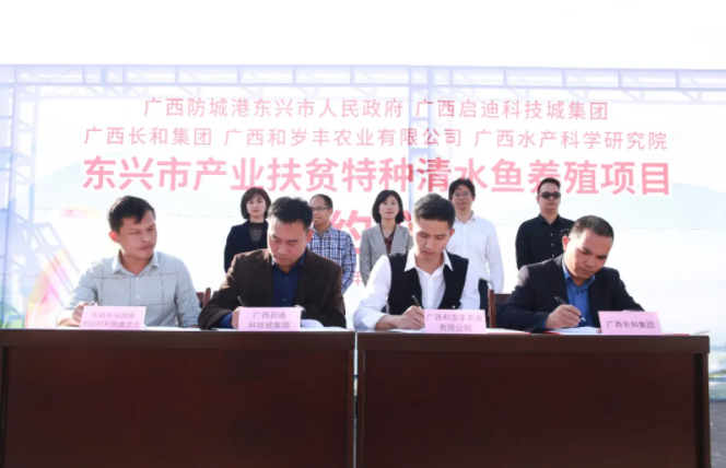 廣西啟迪聯(lián)合農產企業(yè)共同打造“產業(yè)+技術+資本”的扶貧新模式,堅持優(yōu)勢互補、共擔風險、合作共贏。該模式將養(yǎng)殖特種清水魚,通過技術支持,減輕養(yǎng)殖成本壓力,降低養(yǎng)殖風險;為農戶提供指導、培訓等養(yǎng)殖端全鏈條服務。同時,東興市馬路鎮(zhèn)吊應村村委和廣西和歲豐農業(yè)有限公司簽署《包銷回購協(xié)議》,共同助力吊應村開拓農產品銷路、搭建線上線下銷售平臺、打造特色品牌,實現(xiàn)以點帶面助推馬路鎮(zhèn)、東興市的脫貧和發(fā)展致富。