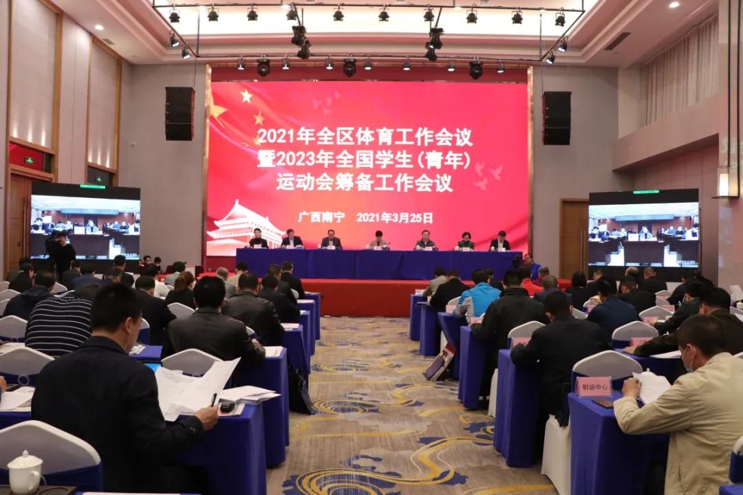 廣西壯族自治區(qū)政府黨組成員蔡麗新,自治區(qū)政府副秘書長唐寧,自治區(qū)政府辦公廳二級巡視員戴倩,自治區(qū)體育局黨組書記、局長李澤,啟迪控股高級常務副總裁、清華科技園管委會副主任、國際科技園及創(chuàng)新區(qū)域協(xié)會(IASP) 副主席陳鴻波,啟迪控股高級副總裁、廣西啟迪科技城集團董事長李東明,以及自治區(qū)各地市分管領導與體育部門負責同志出席會議。
