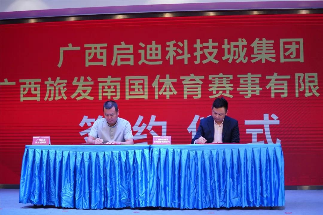 自治區(qū)體育局黨組成員、副局長盧意文,廣西旅游發(fā)展集團(tuán)有限公司黨委委員、紀(jì)委書記、自治區(qū)監(jiān)委駐集團(tuán)公司監(jiān)察專員莫桂友,廣西旅游發(fā)展集團(tuán)有限公司黨委委員、副總經(jīng)理、總法律顧問陳銘釗,共青團(tuán)廣西區(qū)委社會(huì)聯(lián)絡(luò)部部長單振風(fēng),南寧市體育局黨組成員、副局長莫樹森,廣西社會(huì)體育運(yùn)動(dòng)發(fā)展中心主任林敬華,啟迪控股股份有限公司總裁助理、廣西啟迪科技城集團(tuán)總裁宋鐵農(nóng),廣西旅發(fā)南國體育投資集團(tuán)有限公司副總經(jīng)理馮浩江,南寧青秀山風(fēng)景名勝旅游區(qū)管委會(huì)黨政辦主任韋偉文出席儀式。
