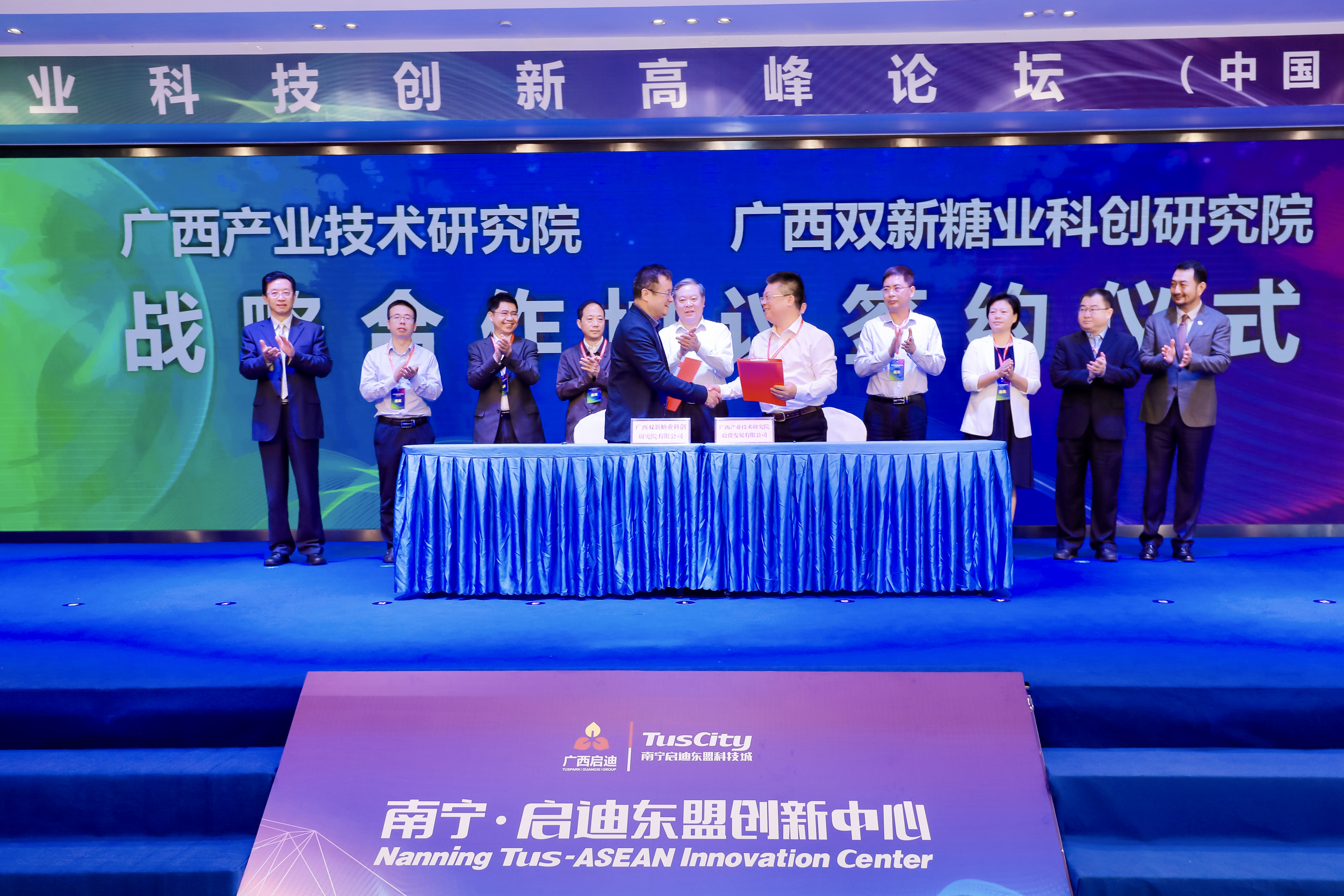 在廣西人大常委會副主任、黨組副書記張秀隆,中國工程院院士張福鎖,廣西人大農業(yè)與農村委員會主任委員吳玉斌,南寧市政協(xié)副主席、邕寧區(qū)委書記鄧娟娟,清華大學教授劉德華,廣西產業(yè)技術研究院代理副院長杜文宏,南寧市科技局黨組書記王亞楠,啟迪控股高級常務副總裁陳鴻波,啟迪控股高級副總裁、廣西啟迪科技城集團董事長李東明的共同見證下,廣西產業(yè)技術研究院與廣西雙新糖業(yè)科創(chuàng)研究院簽署戰(zhàn)略合作協(xié)議。雙方將在糖業(yè)產業(yè)科技創(chuàng)新服務、科技成果轉化、科技攻關、高尖端人才引育等方面開展合作,加快推動廣西糖業(yè)高質量發(fā)展,共同致力將廣西糖業(yè)打造成為國內領先、國際一流水平的特色優(yōu)勢產業(yè)。