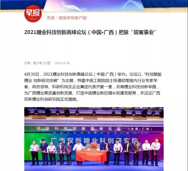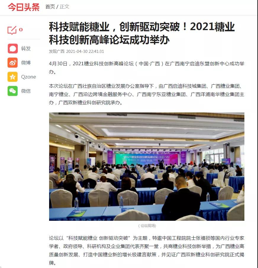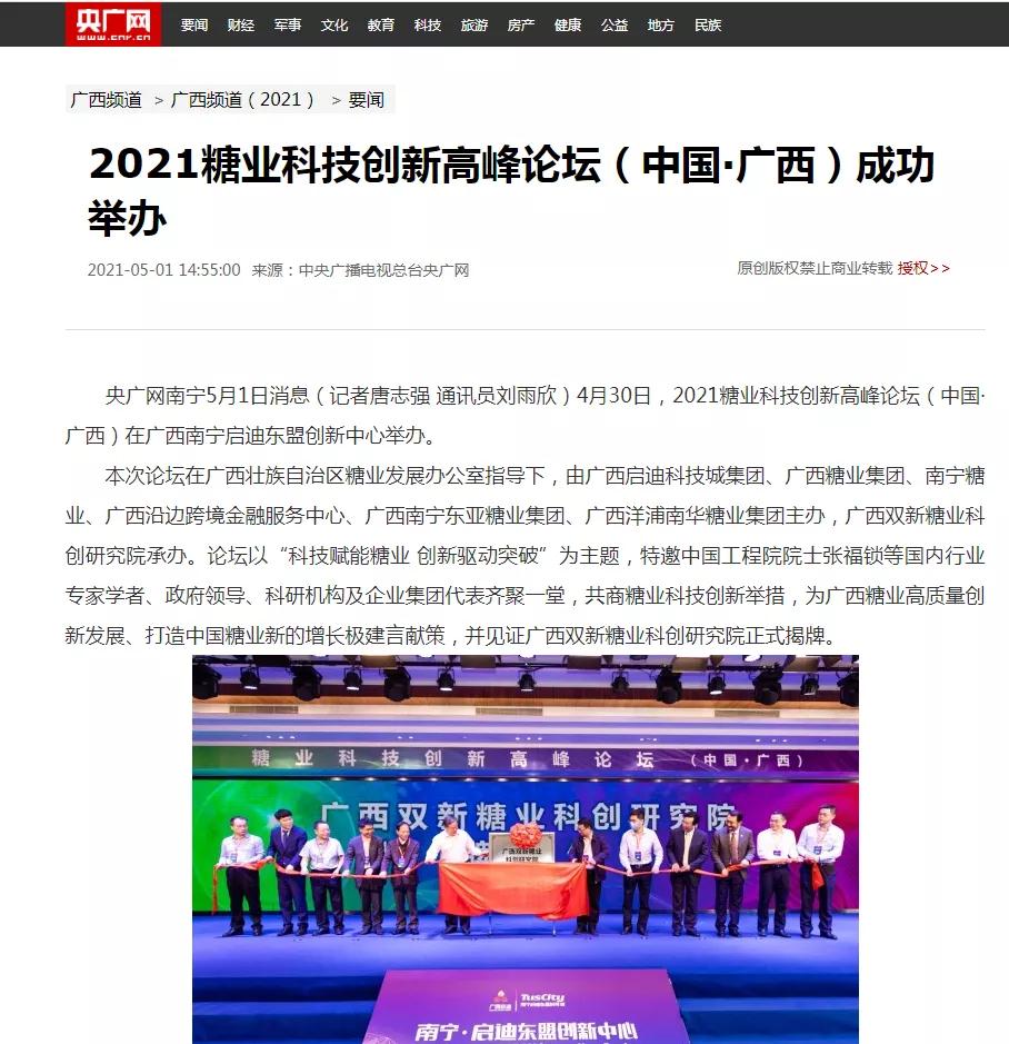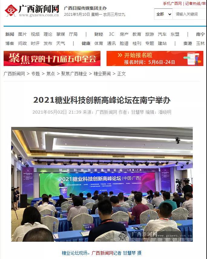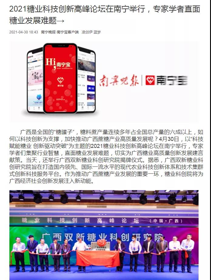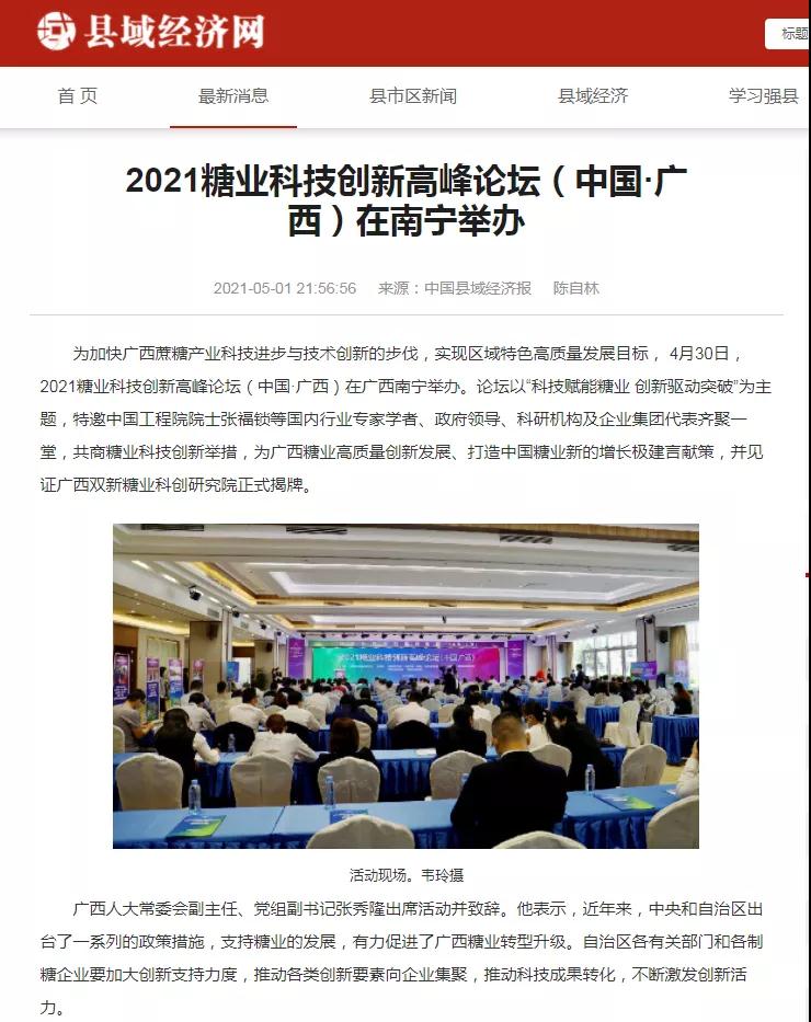媒體聚焦 | 20多家媒體報(bào)道2021糖業(yè)科技創(chuàng)新高峰論壇(中國·廣西)盛況