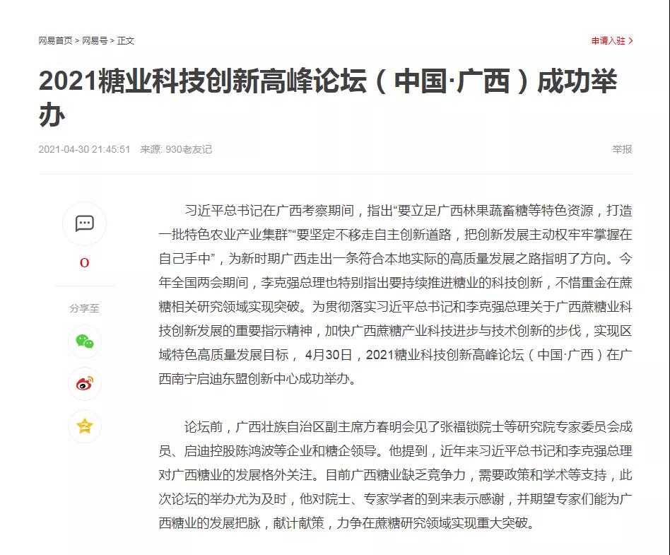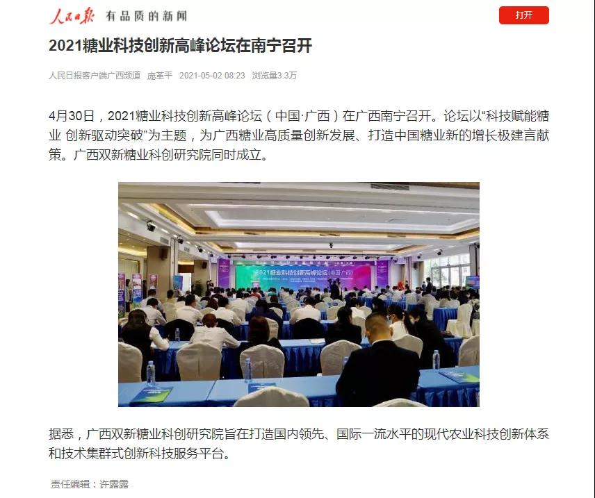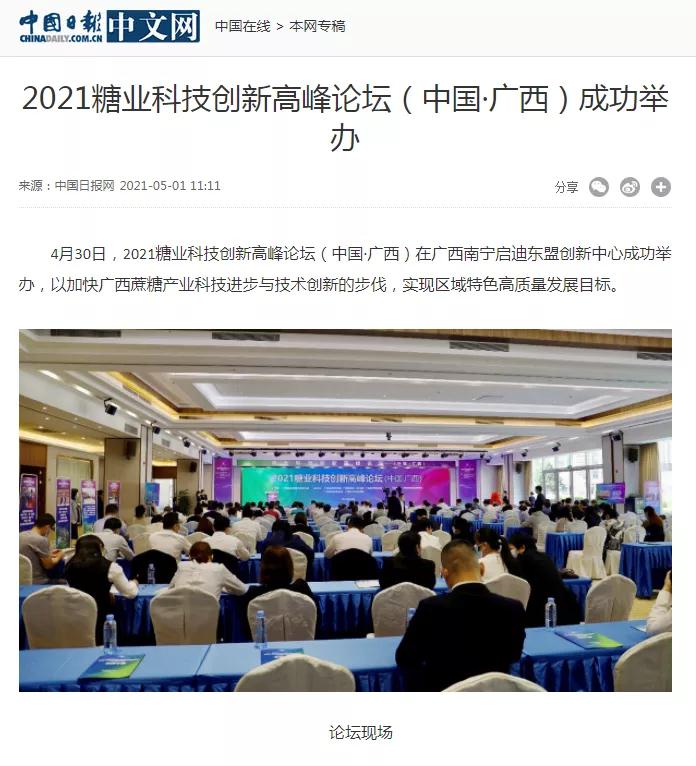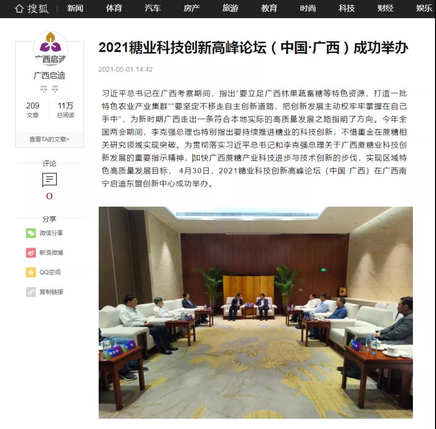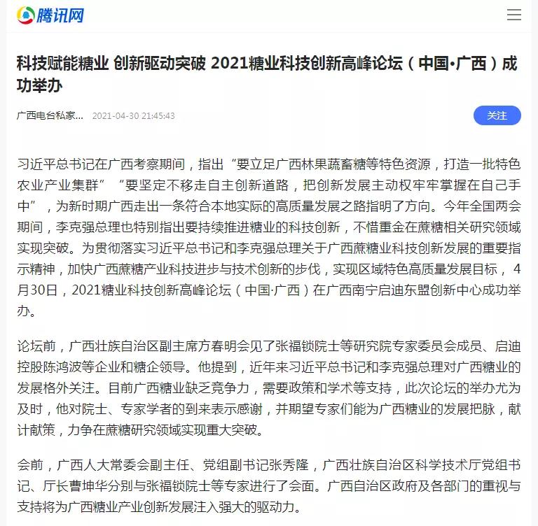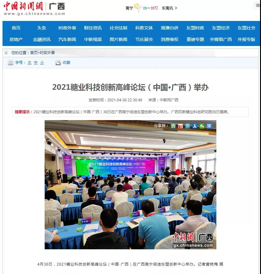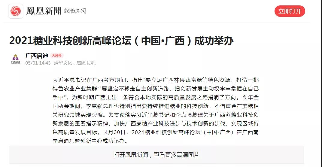 媒體聚焦 | 20多家媒體報(bào)道2021糖業(yè)科技創(chuàng)新高峰論壇(中國·廣西)盛況