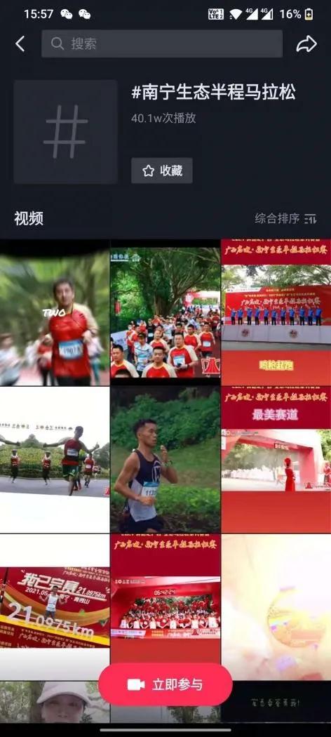 以小視頻的形式記錄比賽現(xiàn)場精彩瞬間,以分享有獎(jiǎng)活動(dòng)促熱度,截止5月30日,抖音話題#南寧生態(tài)半程馬拉松#互動(dòng)視頻104條,播放量達(dá)40萬,活動(dòng)話題大熱網(wǎng)絡(luò)。