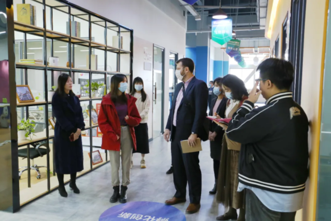 在工作人員的帶領(lǐng)下,史明修領(lǐng)事一行先后參觀了廣西啟迪Lazada跨境生態(tài)創(chuàng)新服務(wù)中心和南寧綜試區(qū)海外人才創(chuàng)新創(chuàng)業(yè)基地。工作人員對廣西啟迪創(chuàng)新跨境平臺業(yè)務(wù)、院校人才培養(yǎng)、社會化人才培訓、海創(chuàng)項目等方面進行了介紹。