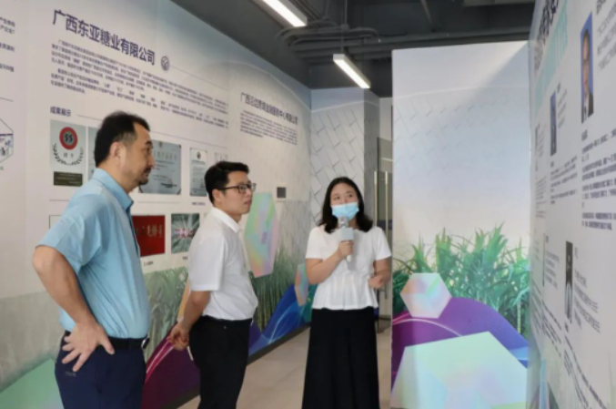 隨后,陶岳彬區(qū)長一行考察參觀了廣西雙新糖業(yè)科創(chuàng)研究院。廣西雙新糖業(yè)科創(chuàng)研究院,是經(jīng)廣西壯族自治區(qū)人民政府和廣西壯族自治區(qū)糖辦批復(fù)同意,由廣西啟迪科技城集團(tuán)牽頭與廣西壯族自治區(qū)食糖產(chǎn)業(yè)龍頭集團(tuán)企業(yè)共同組建的,是服務(wù)國家食糖戰(zhàn)略安全組建的創(chuàng)新服務(wù)平臺。科創(chuàng)院積極對接清華大學(xué)、中國農(nóng)業(yè)大學(xué)、廣西大學(xué)、華南農(nóng)業(yè)大學(xué)、廣東工業(yè)大學(xué)、福建農(nóng)林大學(xué)及廣西農(nóng)科院等科研機(jī)構(gòu)的科技資源技術(shù),成立了由蔗糖產(chǎn)業(yè)鏈的國內(nèi)外頂級行業(yè)專家組成的專家委員會??苿?chuàng)院將整合國內(nèi)外各方優(yōu)勢,以科技創(chuàng)新賦能蔗糖產(chǎn)業(yè),全面服務(wù)廣西糖業(yè)產(chǎn)業(yè)高質(zhì)量創(chuàng)新發(fā)展。