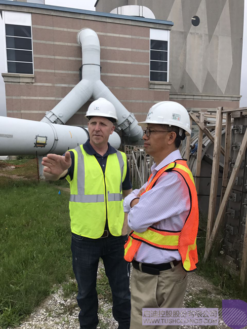 ▲ BIOREM首席執(zhí)行官Derek Webb向啟迪控股高級副總裁、啟迪水務集團董事長趙清(右)介紹項目進展