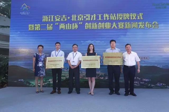 ▲ 安吉縣領(lǐng)導(dǎo)為北京引才工作站授牌
