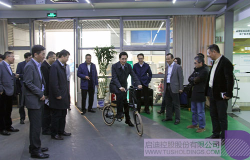 廣西自治區(qū)政府副主席張曉欽現(xiàn)場體驗啟迪孵化企業(yè)的輕客單車