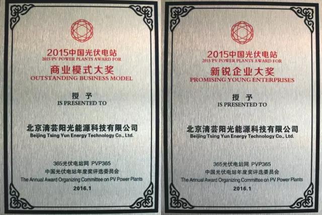 2015年,榮獲“中國(guó)光伏電站新銳企業(yè)大獎(jiǎng)”、“中國(guó)光伏電站商業(yè)模式大獎(jiǎng)”。