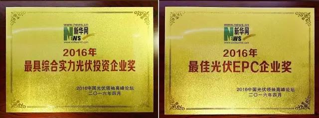 2016年,榮獲“最佳光伏EPC企業(yè)獎(jiǎng)”、“最具綜合實(shí)力光伏投資企業(yè)獎(jiǎng)”,清華科技園“第七批鉆石計(jì)劃企業(yè)”。