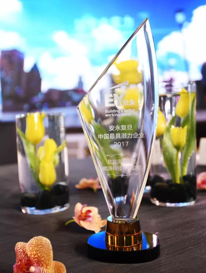 ▲ 啟迪清蕓“2017 安永復(fù)旦中國(guó)最具潛力企業(yè)”獎(jiǎng)杯