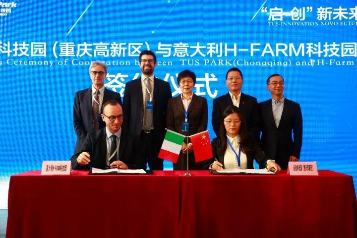 ▲ 啟迪科技園(重慶高新區(qū))與意大利H-FARM科技園簽署合作協(xié)議