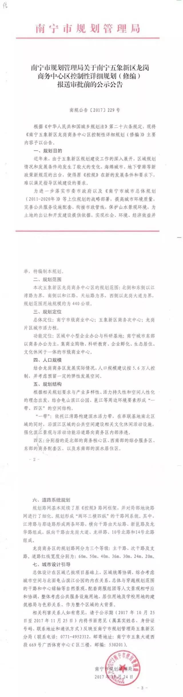 10月25日,龍崗發(fā)布了兩條送審規(guī)劃,第一條為關(guān)于龍崗商務(wù)中心的規(guī)劃,定位為南寧市級商業(yè)中心;另一條為龍崗南區(qū)規(guī)劃,定位為智慧型綜合服務(wù)區(qū)。