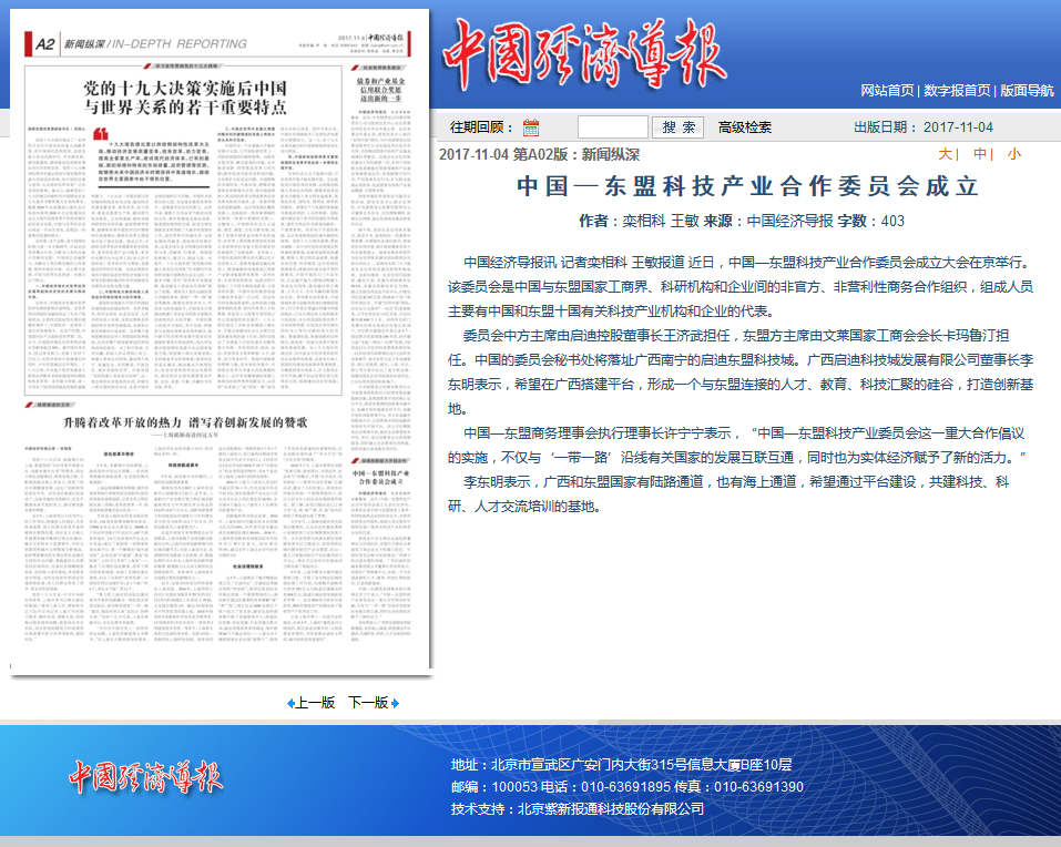 中國—東盟科技產(chǎn)業(yè)合作委員會成立|中國經(jīng)濟導報