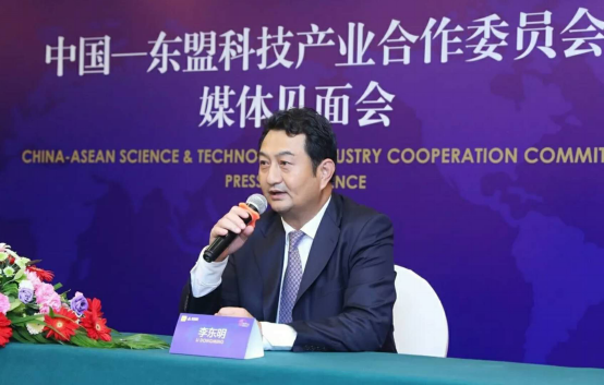 ▲ 中國-東盟科技產(chǎn)業(yè)合作委員會中方執(zhí)行主席及秘書長,啟迪控股高級副總裁李東明答記者問