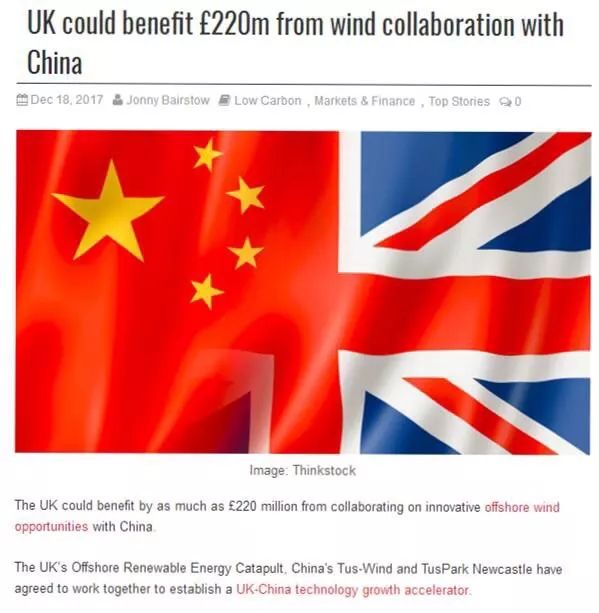 英國(guó)可能從與中國(guó)的風(fēng)力合作中受益2.2億英鎊