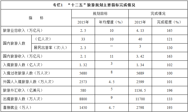 專欄1 “十二五”旅游規(guī)劃主要指標(biāo)完成情況