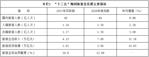 專欄2 “十三五”期間旅游業(yè)發(fā)展主要指標(biāo)