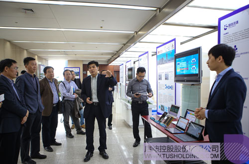 國信靈通CEO侯樹立向代表團(tuán)介紹、演示國信靈通產(chǎn)品