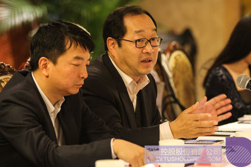 孫旭東高級副總裁(左一)向代表團(tuán)介紹啟迪控股