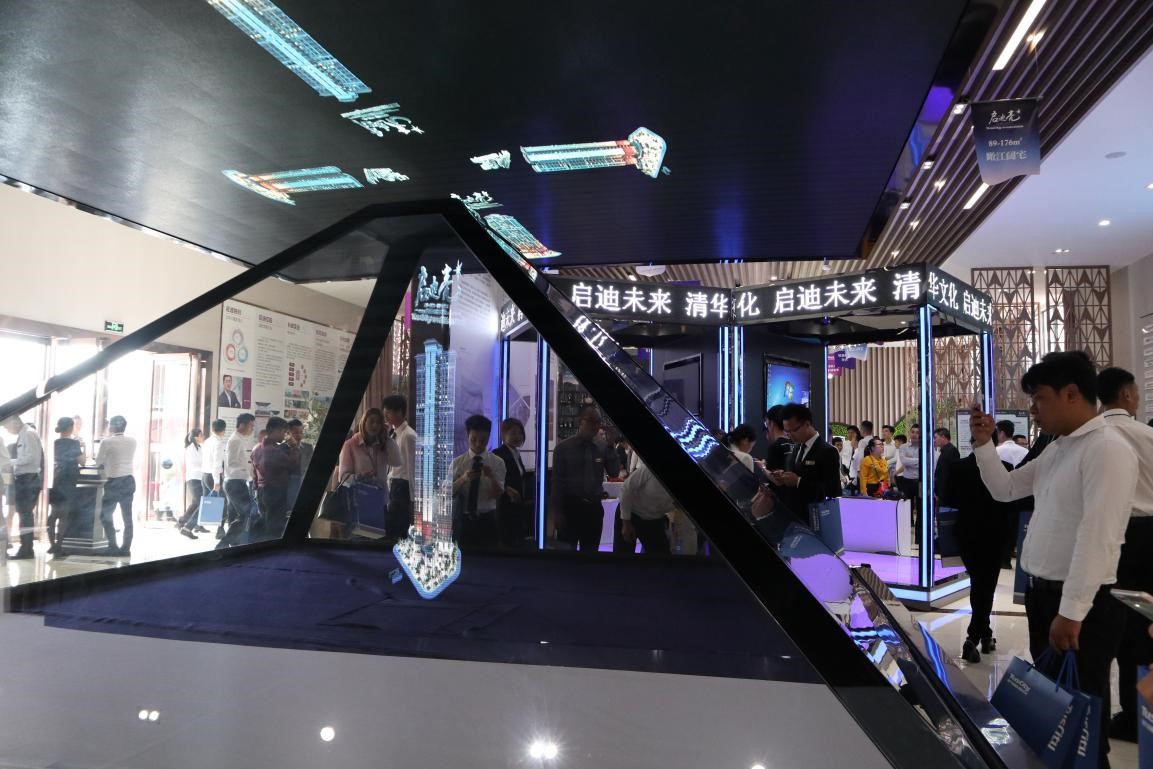 在活動正式開啟之前,啟迪亮置業(yè)顧問帶領渠道經紀人參觀展示中心。啟迪亮展示中心內人聲鼎沸,渠道經紀人聽著啟迪亮置業(yè)顧問對啟迪板塊的詳細講解,明確了啟迪亮作為科技智慧人居社區(qū)的定位。他們駐足于全息投影沙盤前,分析著建筑的布局與方位;停留在戶型模型前進行熱烈地討論,深入地汲取項目信息;戴上VR眼鏡,近距離體驗高科技看房的魅力。