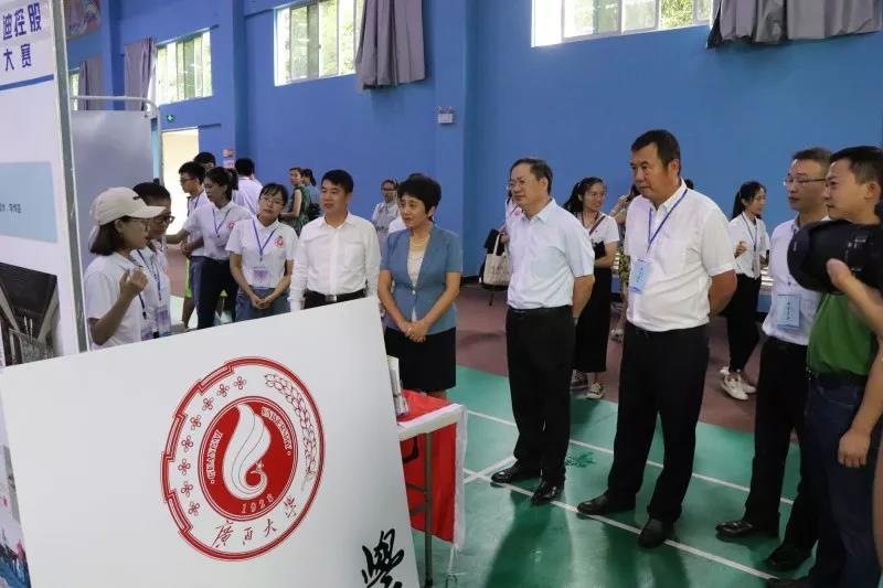 為深入學習貫徹習近平新時代中國特色社會主義思想和黨的十九大精神,進一步落實黨中央、廣西自治區(qū)黨委政府關于促進大學生創(chuàng)新創(chuàng)業(yè)的指示精神,6月1—3日,由共青團廣西區(qū)委員會、自治區(qū)教育廳等部門聯(lián)合主辦,廣西啟迪支持舉辦的2018年“創(chuàng)青春”啟迪控股廣西大學生創(chuàng)業(yè)大賽決賽在玉林師范學院成功舉行。廣西自治區(qū)高校工委副書記覃萍,共青團廣西區(qū)委副書記李曉勇,自治區(qū)人才服務辦公室副主任譚志雄,自治區(qū)科協(xié)科技咨詢中心主任黃星華,廣西啟迪總裁宋鐵農,玉林師范學院黨委書記唐仁郭等領導及全區(qū)各大高校的領導和大學生參賽隊伍等上千人出席了本屆決賽開幕式。