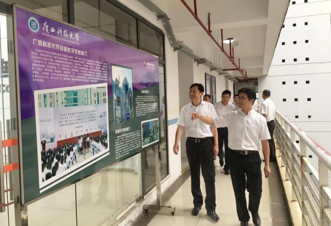 6月4日,廣西自治區(qū)黨委副書記孫大偉在柳州市委書記鄭俊康等陪同下到廣西科技大學啟迪數(shù)字學院對科教創(chuàng)新、合作辦學進行調(diào)研并指導工作。調(diào)研中,孫大偉一行實地了解了學院建設運營狀況,詳細詢問了學院科教創(chuàng)新、校企合作、辦學特色等情況。啟迪數(shù)字學院執(zhí)行院長洪振挺做工作匯報。