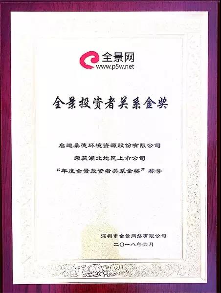 啟迪桑德榮膺“全景投資者關(guān)系金獎”