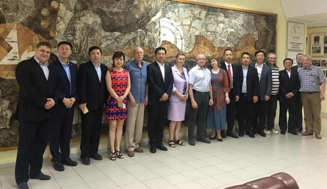 ▲ 新西伯利亞州副州長根•阿•薩珀日尼科夫(前排左八)及俄羅斯科學院代表與中方代表團合影