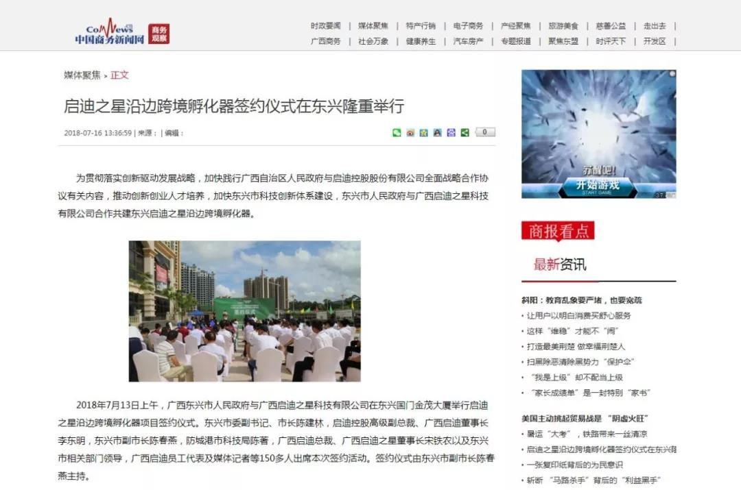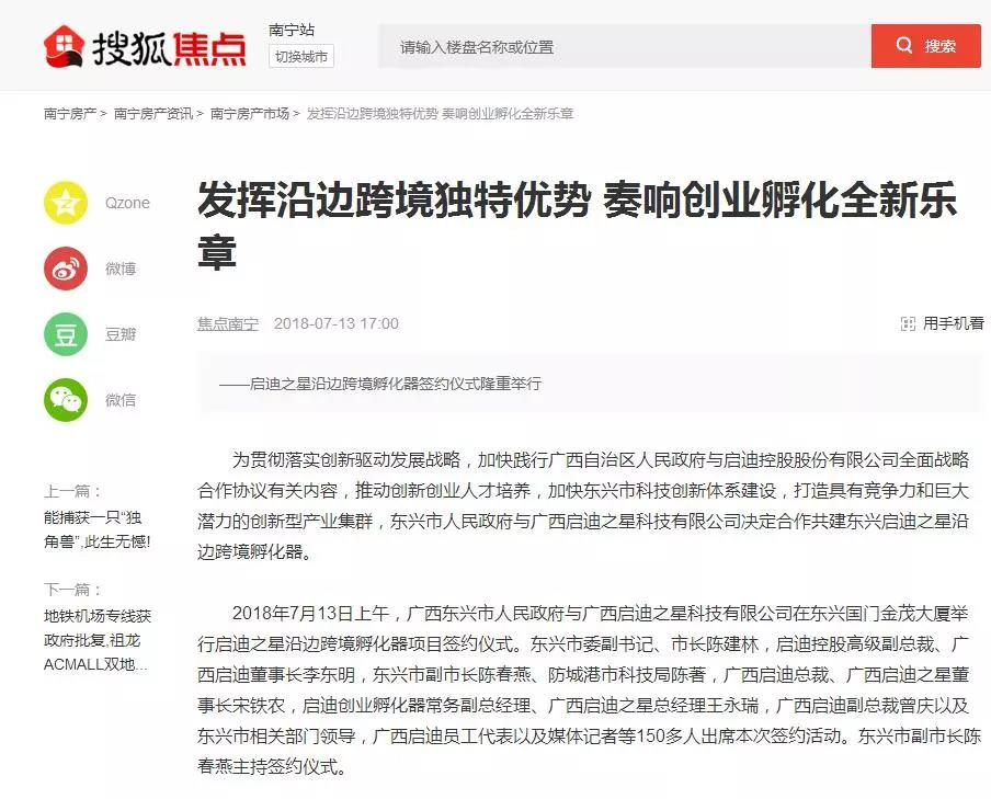 媒體聚焦 | 22家媒體競(jìng)相報(bào)道啟迪之星沿邊跨境孵化基地落地廣西東興