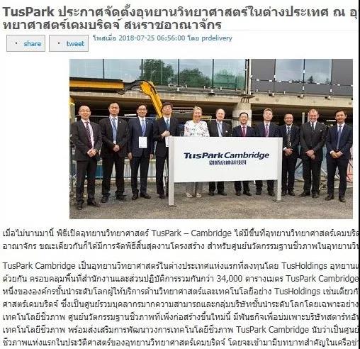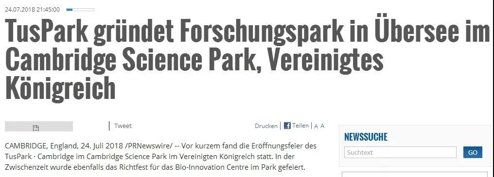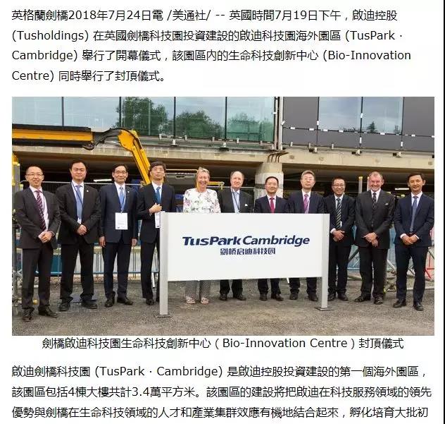 近日,由啟迪控股在英國劍橋投資建設(shè)的劍橋啟迪科技園(TusPark•Cambridge)舉辦開幕儀式和園區(qū)生命科技創(chuàng)新中心(Bio-InnovationCentre)封頂儀式,該活動在全球范圍內(nèi)引起廣泛關(guān)注,位于美國、法國、意大利、德國、英國、加拿大、瑞士、葡萄牙、俄羅斯、日本、新加坡、韓國、澳大利亞、印度、泰國、印度尼西亞、馬來西亞等國家和中國香港、澳門、臺灣地區(qū)的共計(jì)數(shù)百家媒體對此進(jìn)行了不同形式的報道。