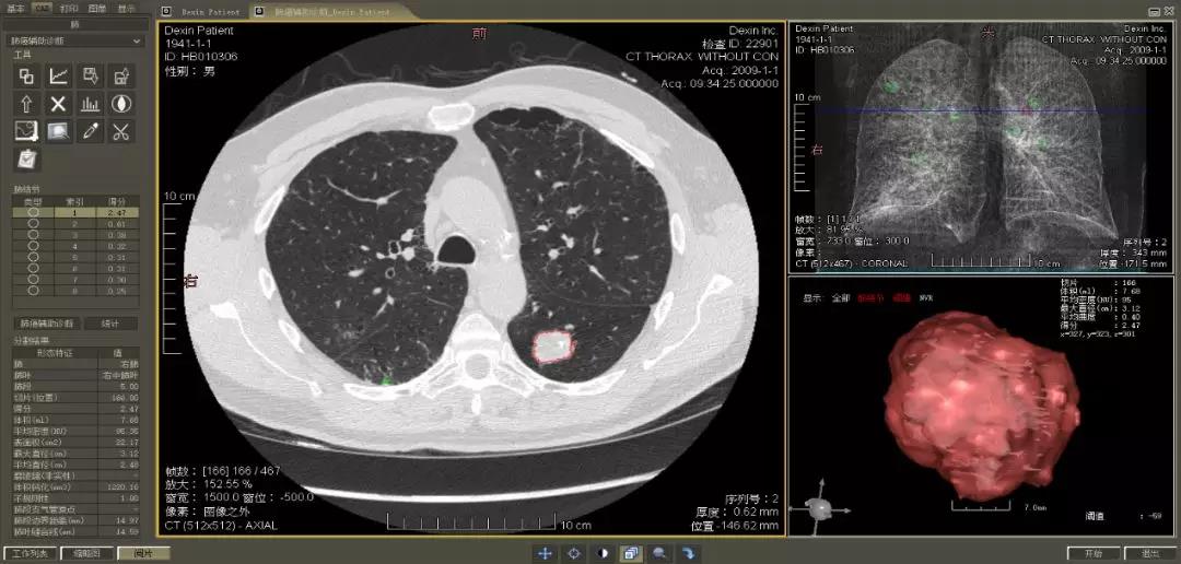 ▲ 數(shù)字肺產(chǎn)品肺癌計算機(jī)輔助診斷