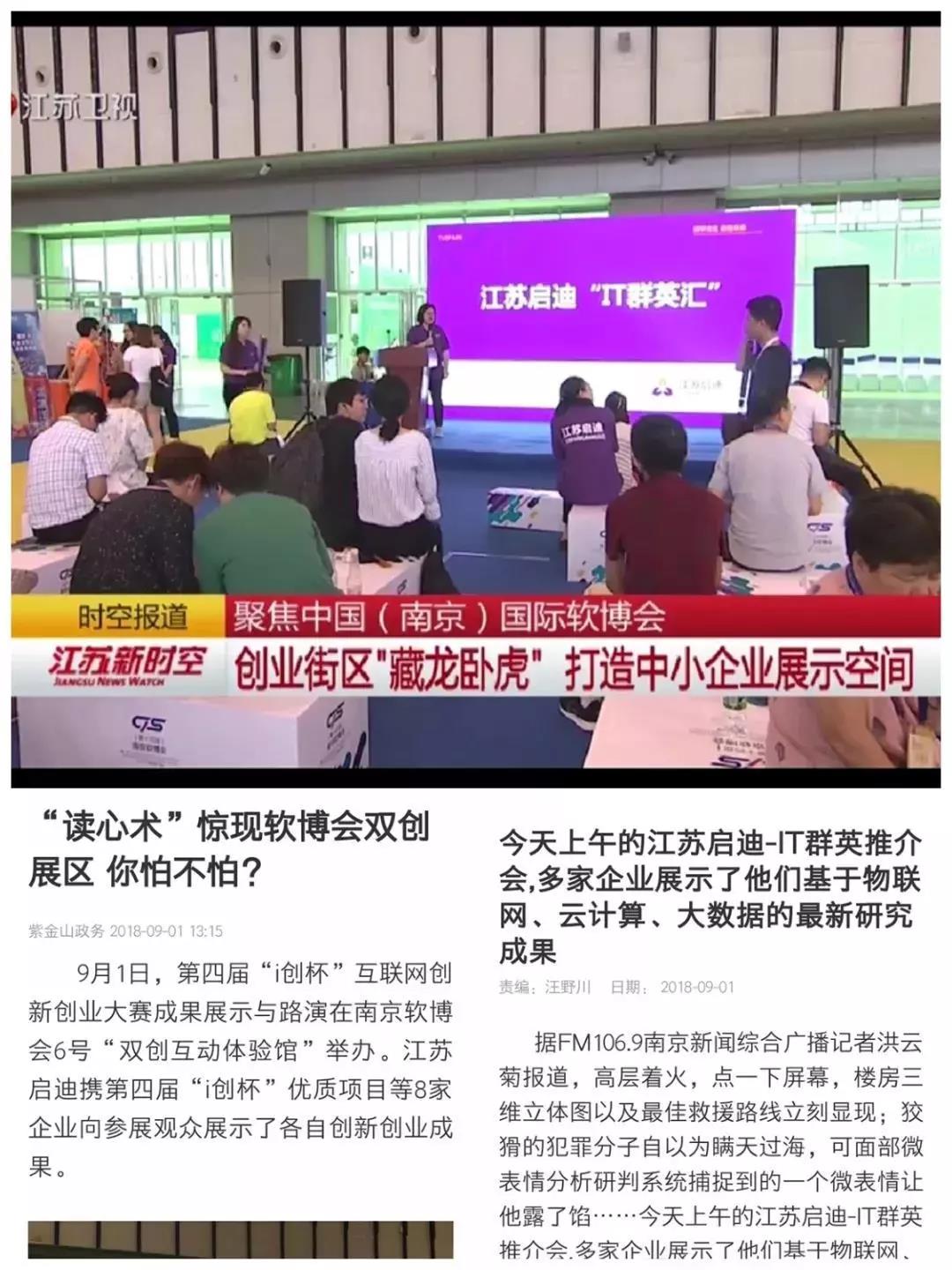 江蘇啟迪此次組織了來自啟迪長三角創(chuàng)新網(wǎng)絡(luò)中的8個(gè)科技項(xiàng)目亮相軟博會(huì)雙創(chuàng)展區(qū),并舉辦了江蘇啟迪項(xiàng)目推介“IT群英匯”活動(dòng)。江蘇衛(wèi)視、新華日?qǐng)?bào)等多家媒體對(duì)本次活動(dòng)進(jìn)行了報(bào)道。
