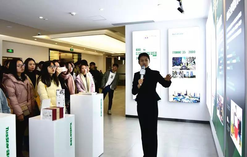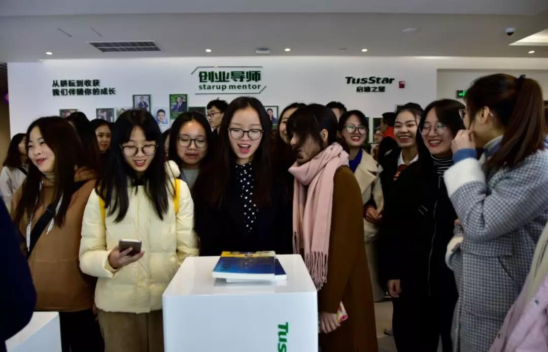 ▲ 廣西大學(xué)行健文理學(xué)院商學(xué)部一行參觀啟迪之星一帶一路孵化基地