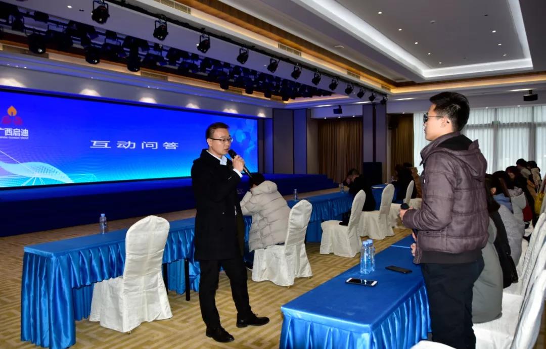 在互動問答環(huán)節(jié)中,陸海云經(jīng)理對同學(xué)們提出的人力資源管理方面問題作了詳細解答,同時向大家介紹了廣西啟迪在人力資源管理中的亮點與特色,及舉例分享人力資源管理職業(yè)技能。方志明副總經(jīng)理就啟迪之星全球孵化網(wǎng)絡(luò)的搭建、啟迪之星(廣西)的建設(shè)運營情況以及啟迪之星“孵化服務(wù)+創(chuàng)業(yè)培訓(xùn)+天使投資+開放平臺”為核心的企業(yè)培育方式進行了詳細介紹。