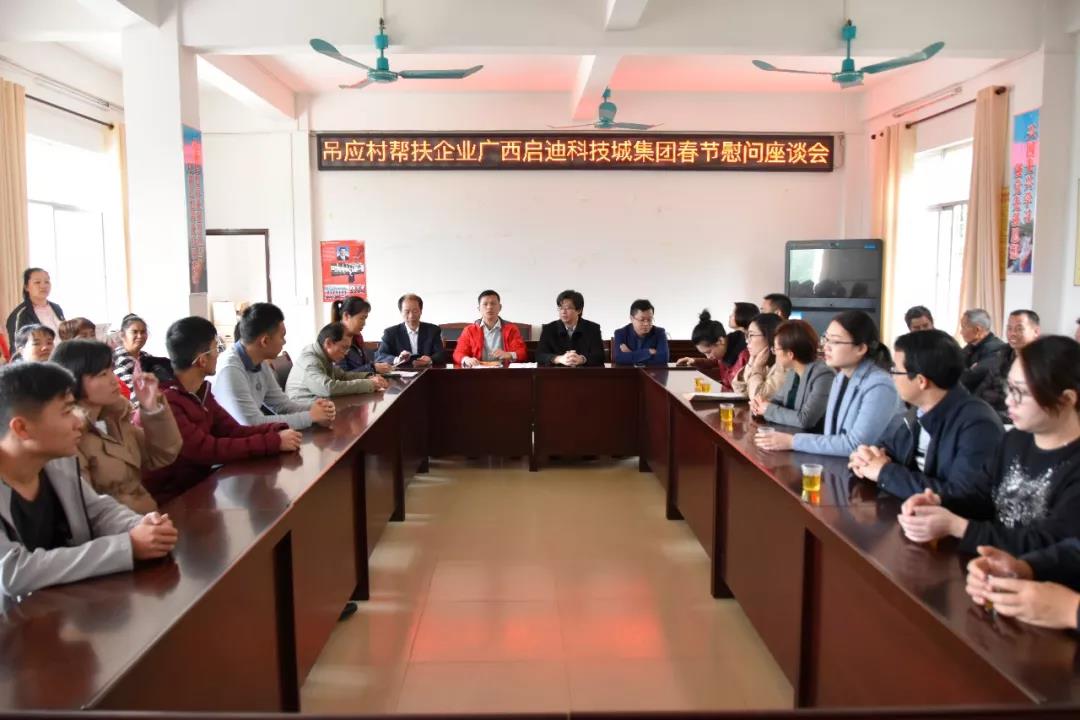 廣西啟迪慰問團(tuán)與東興市馬路鎮(zhèn)吊應(yīng)村村委及貧困戶代表進(jìn)行了座談。座談會上,廣西啟迪科技城集團(tuán)副總裁曾慶表示,吊應(yīng)村貧困村民的溫飽冷暖始終是廣西啟迪全體員工的關(guān)心和牽掛,此行慰問團(tuán)代表廣西啟迪全體員工向東興市馬路鎮(zhèn)吊應(yīng)村送上慰問物資和誠摯的新年祝福。廣西啟迪將會在多番的了解和調(diào)研之后,形成系統(tǒng)的扶貧方案,確保有效益有質(zhì)量地幫助吊應(yīng)村實(shí)現(xiàn)脫貧致富和產(chǎn)業(yè)轉(zhuǎn)型升級。