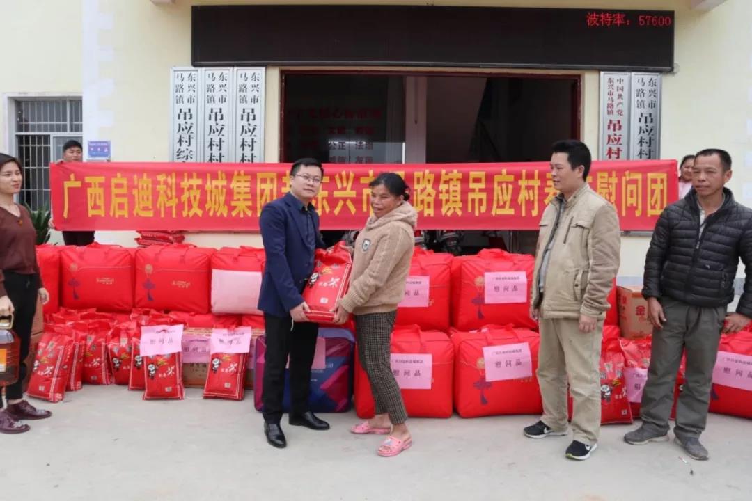 廣西啟迪科技城集團(tuán)綜合運(yùn)營管理中心總經(jīng)理覃樹寧、董事會秘書宋紅雪、辦公室主任李炯初等公司領(lǐng)導(dǎo)一起為吊應(yīng)村貧困戶送去慰問物資和新春祝福。
