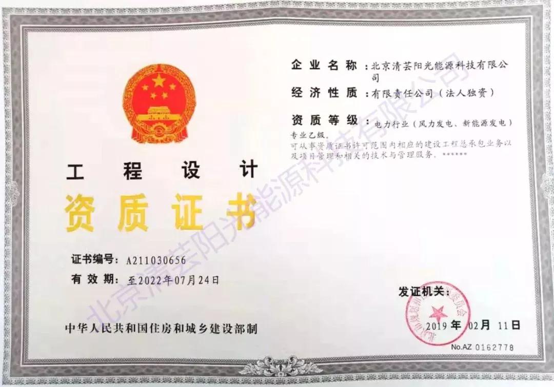 電力行業(yè)(風力發(fā)電)專業(yè)工程設計資質(zhì)由中華人民共和國住房和城鄉(xiāng)建設部核定頒發(fā),涵蓋了地質(zhì)、水利水電、環(huán)保、水土保持等專業(yè)設計能力,對申報企業(yè)的專業(yè)能力、工程業(yè)績、資金實力及社會信譽都有較高要求。憑借優(yōu)異的設計能力,專業(yè)的設計團隊及數(shù)百兆瓦的設計施工經(jīng)驗,啟迪清蕓最終通過各項專業(yè)審核,成為北京市同批資質(zhì)獲此專業(yè)的唯一企業(yè)。