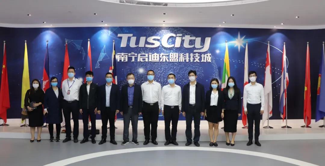 會談前廣西南國體育投資集團黨支部書記、執(zhí)行董事兼總經(jīng)理謝子梁一行參觀了南寧·啟迪東盟創(chuàng)新中心及啟迪之星一帶一路孵化基地。