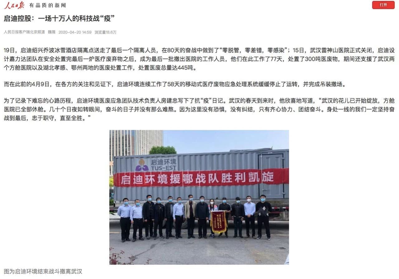 而在此前的4月9日,在各方的關(guān)注和見證下,啟迪環(huán)境連續(xù)工作了58天的移動(dòng)式醫(yī)療廢物應(yīng)急處理系統(tǒng)緩緩?fù)V沽诉\(yùn)轉(zhuǎn),并完成吊裝撤場(chǎng)。